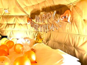 グランハイドアウト那須高原では、テント内で楽しめる「バースデーバルーン装飾」をスタートしました。